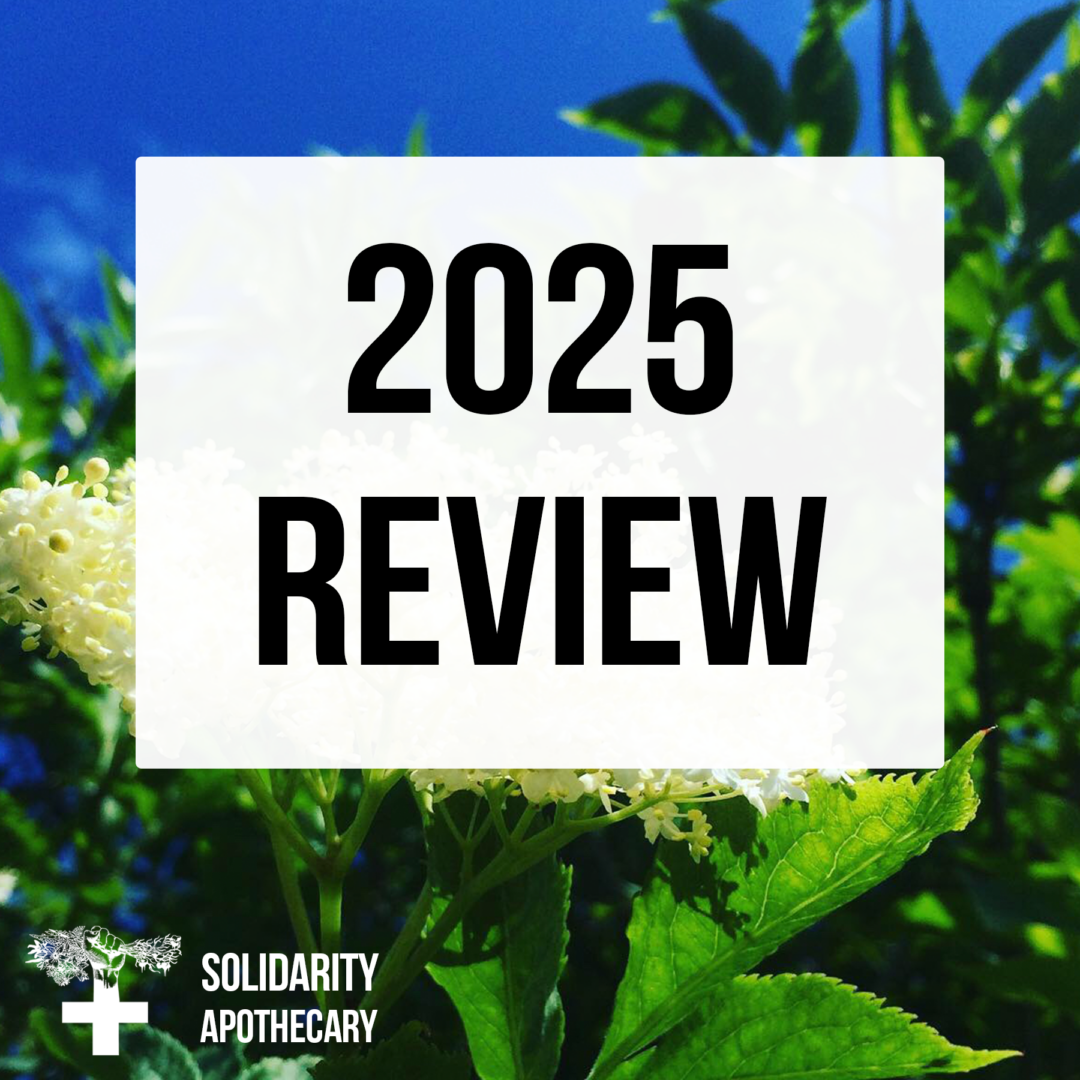 The mission of the Solidarity Apothecary is to materially support revolutionary struggles and communities with plant medicines to strengthen collective autonomy, self-defence and resilience to climate change, capitalism and state violence. Each year, I review the work towards this goal.