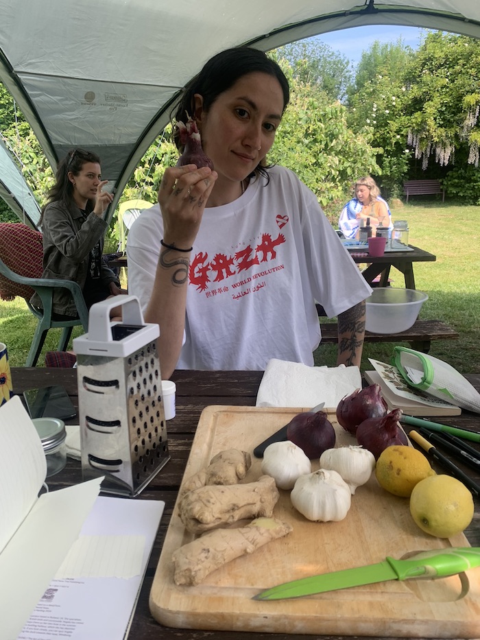 I felt welcome to be exactly as I was and to do exactly what I needed, which is bloody rare. Compared to a more pricy summer school with another quite well known herbal school this was 10x better and way cheaper too, plus it was full of beautiful rainbow neuroqueers. So, basically, a very very very great time, with outdoor fires and connecting with the land, the plants, each other, making friends and getting to meet the wonderful Nicole. We did some dreaming at the end of what kind of projects we'd like to do, which was great and again very grounded in material realities of how to offer care and love and solidarity through working with the land. I also loved that we made some medicines to send to Calais, as this felt very purposeful and important to see how to scale up medicine making. We came away with lots of goodies and full hearts.”